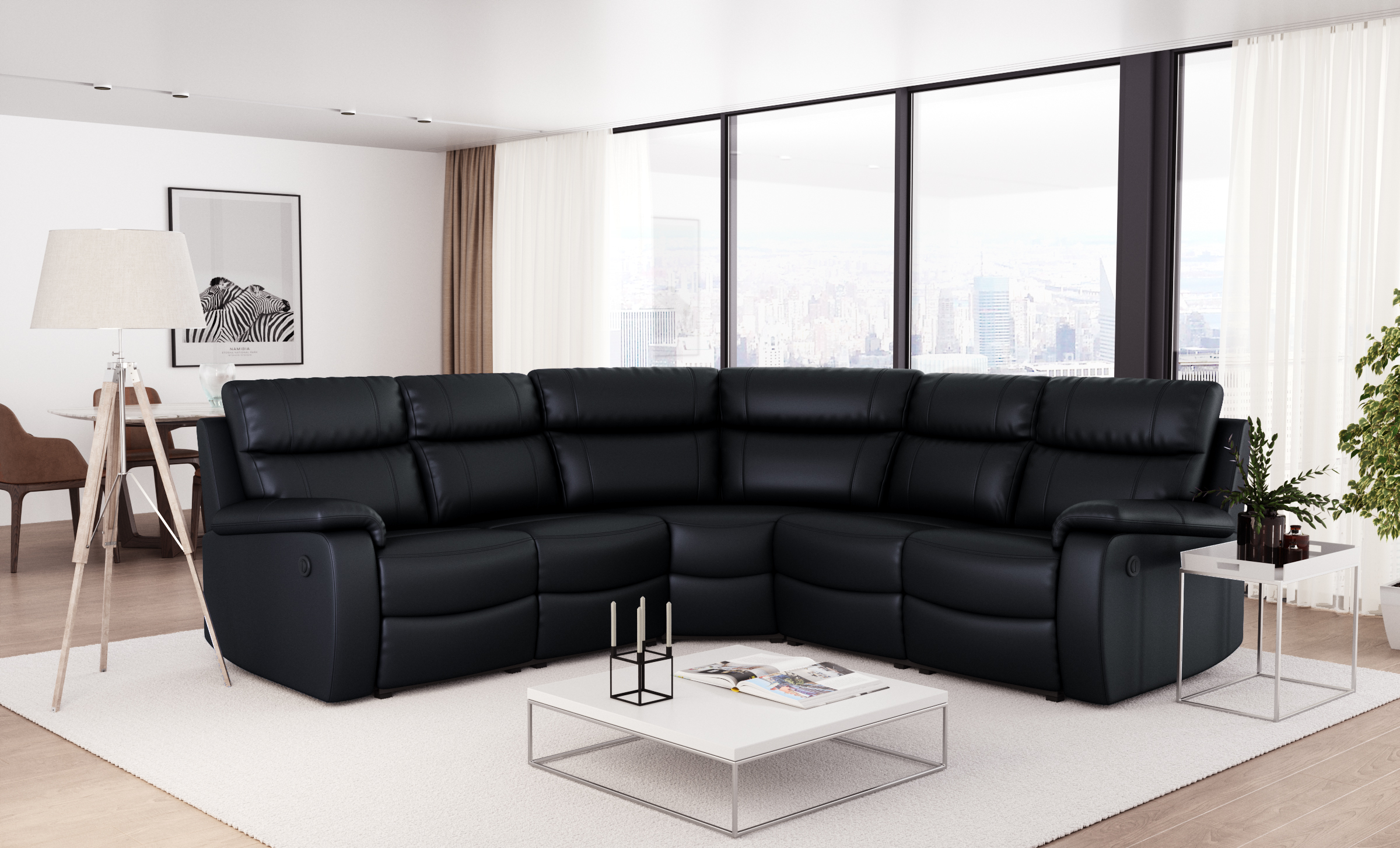Repose-pieds relevables Dossiers aux formes galbées Dossier inclinable jusqu'à 170° Canapé avec un mode electrique : 2 moteurs pour relaxation car 2 parties relevables Large capacité d'assise avec 5 places dont 2 relax