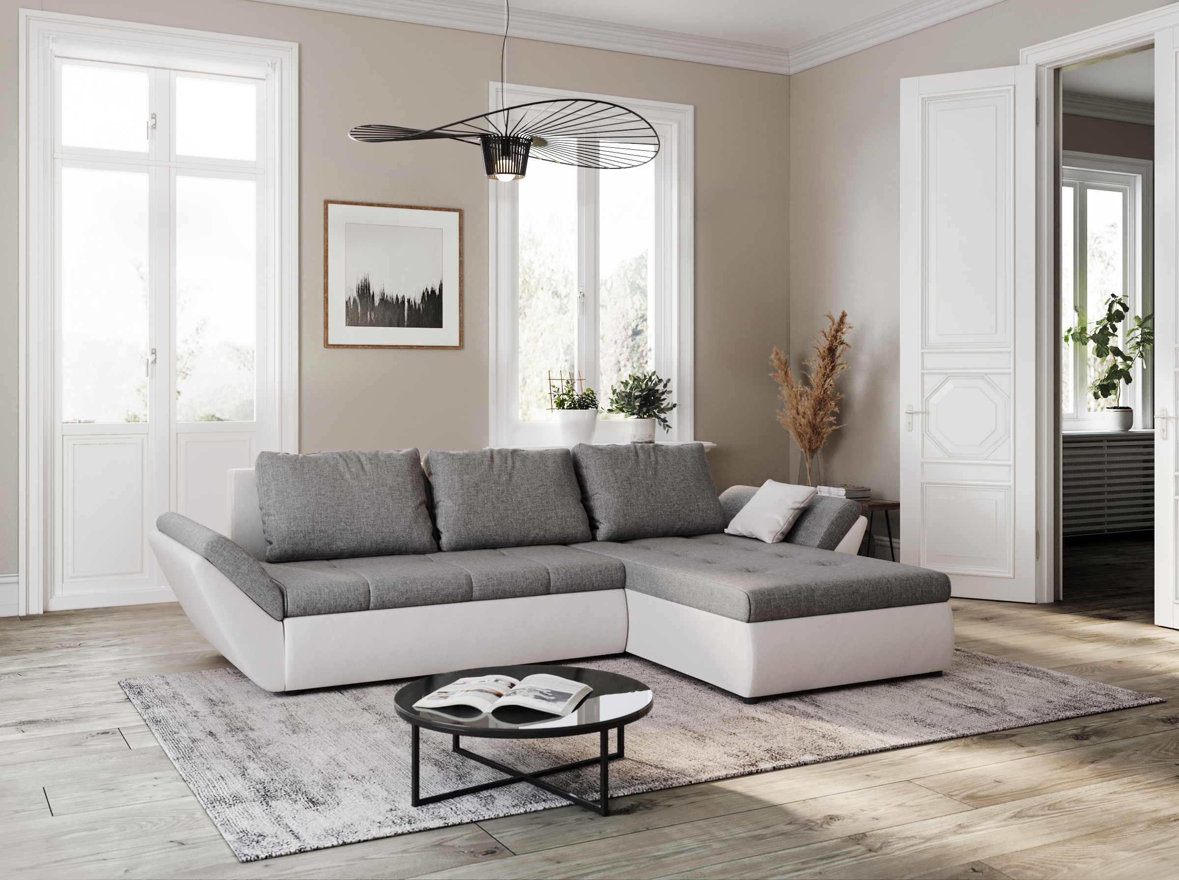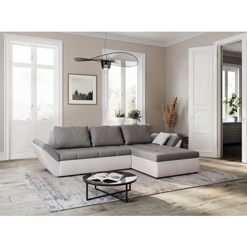 Canapé d'angle réversible convertible en Pu blanc et tissu gris ALIX