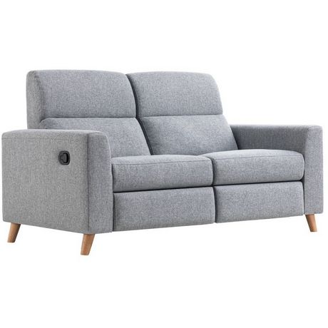 Canapé de relaxation manuel 2,5 places en tissu coloris gris et pieds bois hêtre BERKAM