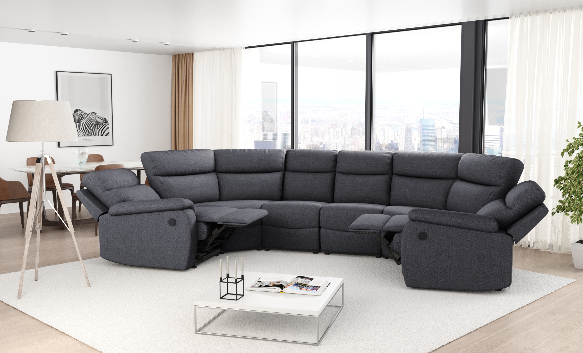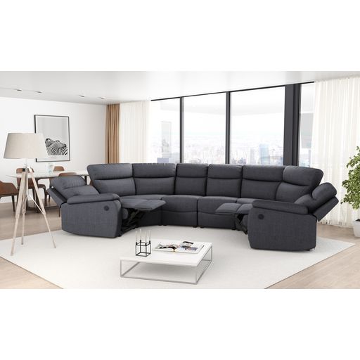 Canapé panoramique relax électrique 6 places HELENE tissu gris foncé