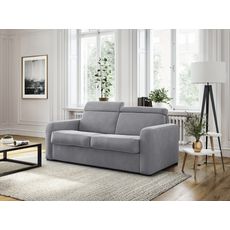 Canapé système couchage rapide 3 places en tissu gris clair CAROLE