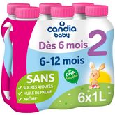 Toute l'expertise et la praticité du lait infantile liquide Candia Baby Dès 6 mois. Du lait pour bébé 2ème âge prêt à l'emploi dans un format 1L.