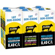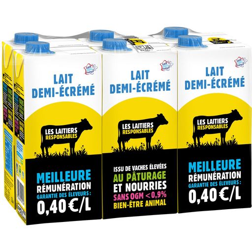 Lait demi-écrémé stérilisé UHT Lait de pâturage Bien être animale Juste rémunération des éleveurs Issus d'animaux nourris sans OGM <0,9%