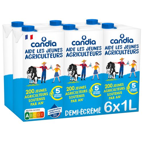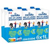 Le renouvellement des générations est un enjeu crucial pour la filière laitière. Pour continuer de produire du lait de qualité en France demain, il faut encourager les jeunes agriculteurs à s'installer dès maintenant. Depuis 1971 Candia marque coopérative soutient une agriculture familiale en France. Aujourd'hui, pour chaque brique de ce lait vendue, Candia reverse 5 centimes au fonds solidaire de la coopérative Sodiaal destiné à ses jeunes agriculteurs. Grâce à vous, Candia contribue à apporter une aide de trésorerie aux jeunes agriculteurs, à aider les fermes à s'équiper pour produire du lait de qualité, à compléter les formation des éleveurs.