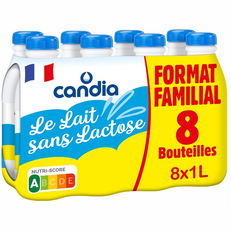 Candia+ Le lait sans lactose, c'est du bon lait français et bien + encore. Il permet à tous de profiter des plaisirs du lait : Un lait 100% français, au goût tout doux et facile à digérer. Contenant moins de 0,1% de lactose, Candia Le Lait Sans Lactose est plus facile à digérer qu'un lait classique. Il convient aux personnes présentant des troubles de la digestion du lactose.