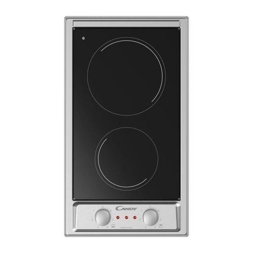 Plaque de cuisson vitrocéramique Idea CANDY 2 foyers - L 30cm - CH32XK - Inox - Foyer AV :1.2 Kw - Foyer AR: 1.7 Kw - Manettes frontales silver - Livrée avec câble électrique