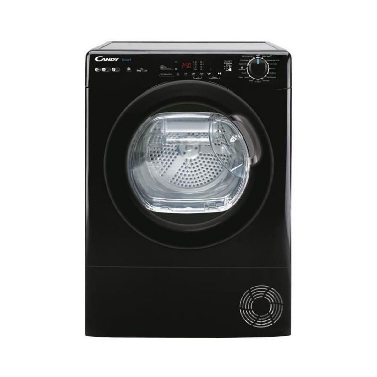 Candy Smart - Programmes : 15 - Depart Diff.: 1-24h - approuvé Woolmark - Connectivité : NFC - 25 programmes supplé avec l'application SimplyFi - Bac EasyCase - 66 DB - Classe A++ - Noir - Hublot Noir