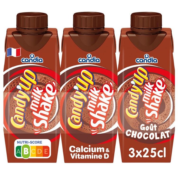 Nouveau ! Découvrez Candy'Up Milkshake, une boisson lactée à la texture onctueuse et au bon goût chocolat si savoureux de Candy'Up. Une recette gourmande pour le goûter, avec du lait 100% français et un nutri-score B. A déguster frais !