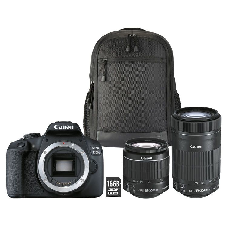 Appareil photo Reflex EOS 2000D Noir +18-55 IS+55-250 IS+Sac+SD 16Go