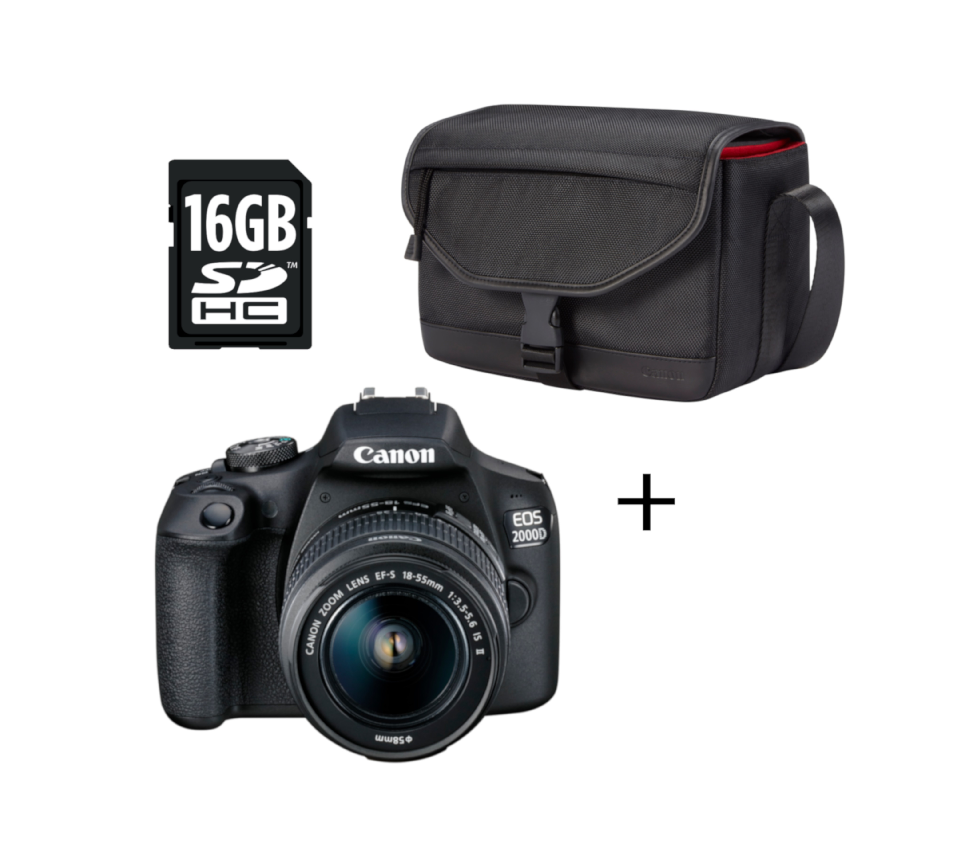 Appareil Photo Reflex - EOS 2000D - Noir + Objectif 18-55mm IS II + Housse SB130 + Carte mémoire SD 16 Go + Chiffonnette