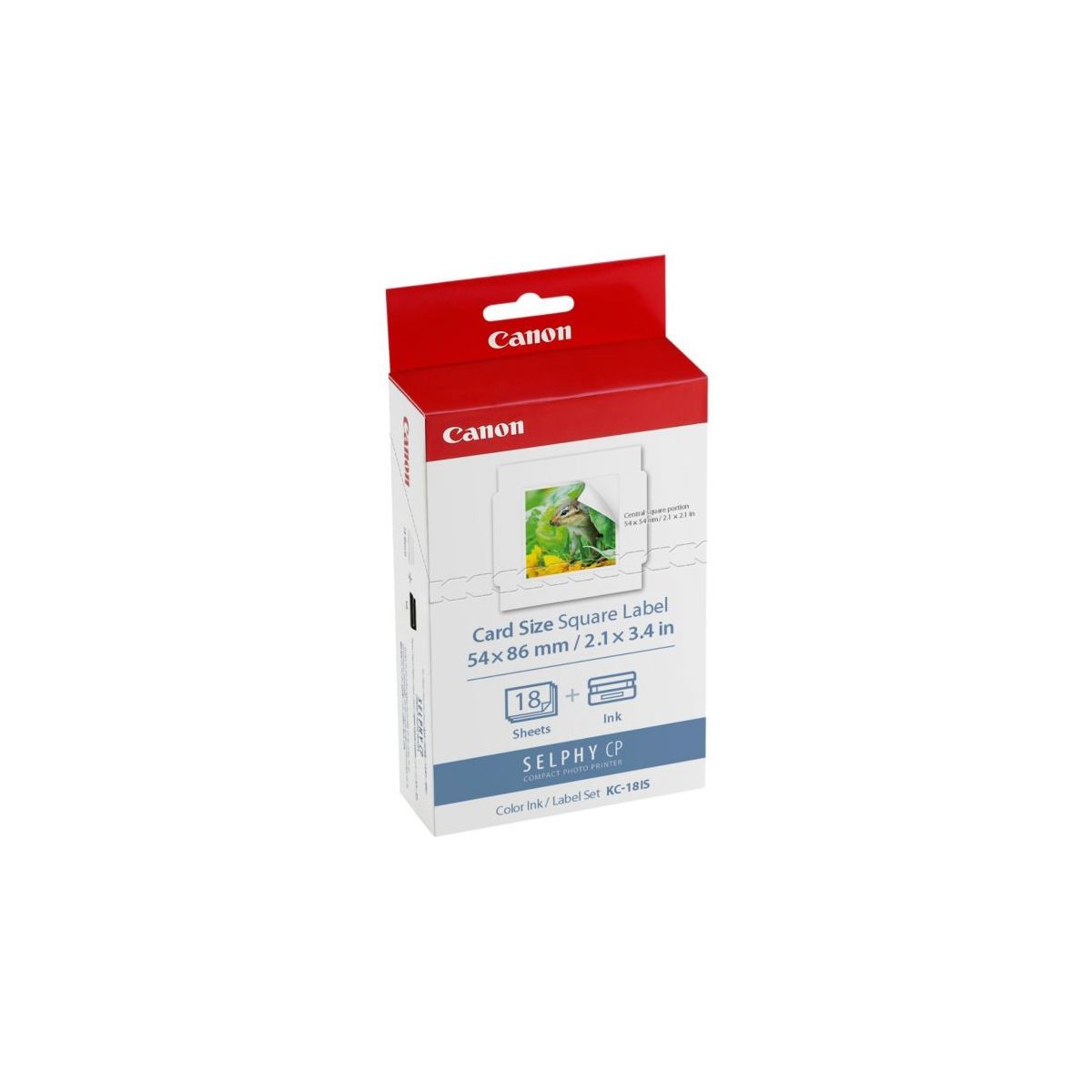 18 autocollants carrés - Format 54x54mm - Requiert une cassette de chargement PCC-CP400 réutilisable