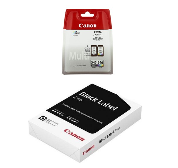 Pack Cartouches d'encre PG-545/CL-546 Noir + Couleur + Ramette papier BK 500F A4 80G