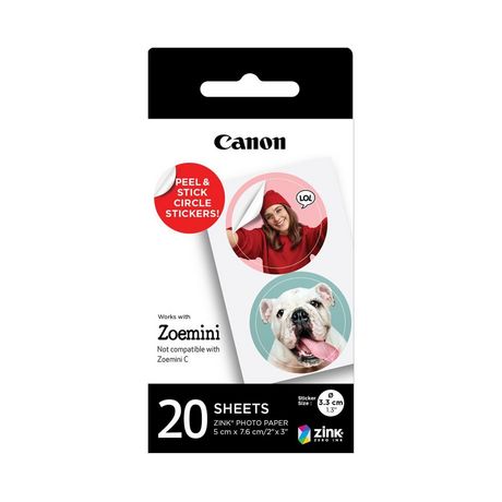 Papier avec 2 sticker 76x50mm - Sticker rond D 33mm - Compatibilité Canon Zoemini