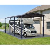 Optez pour ce carport en aluminium ! Ce carport est idéal pour les camping-cars grâce à une hauteur de faîtage de 3,52 m et une largeur de passage de 3,25 m. Il permet de protéger votre camping-cars ou hauts véhicules des caprices de la météo.