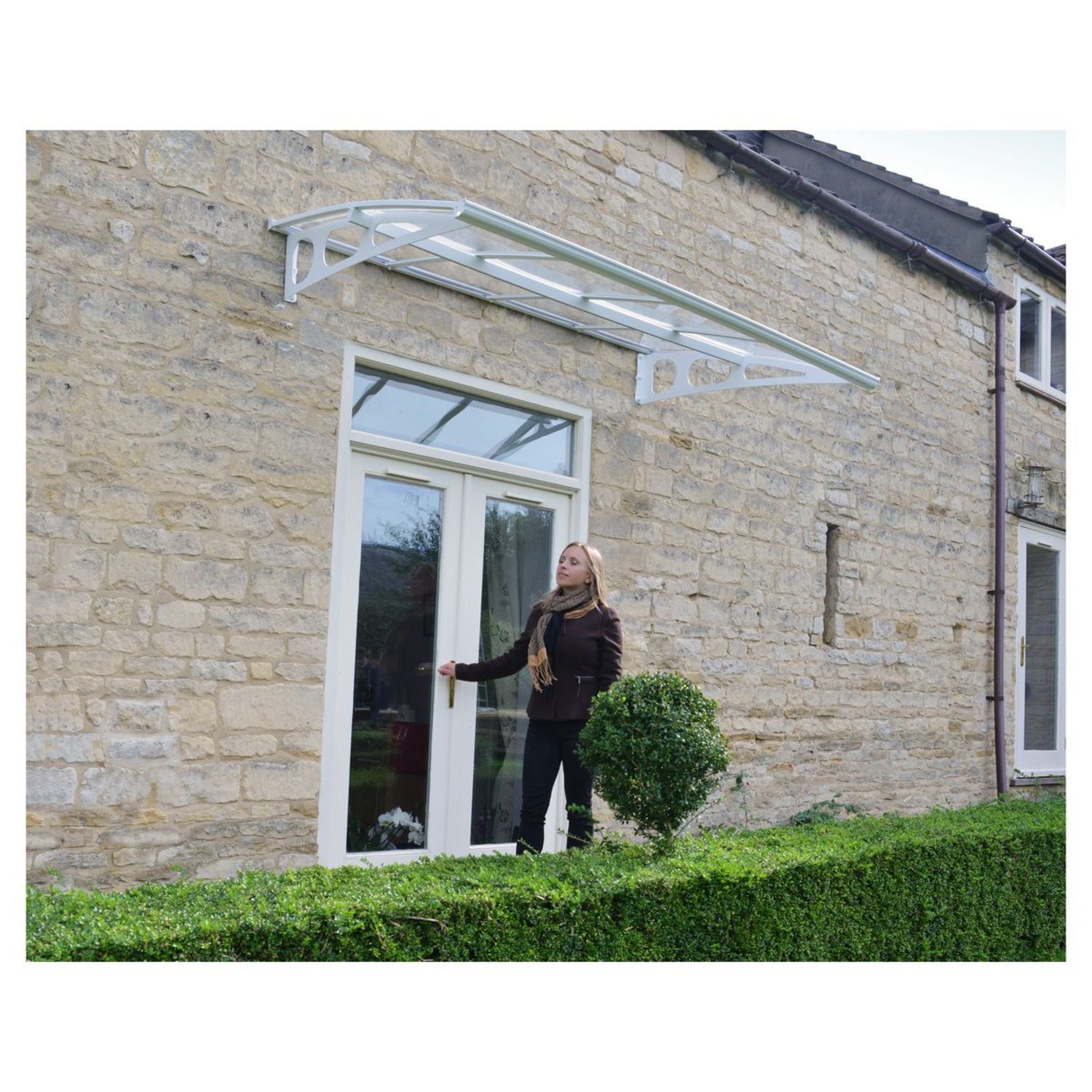 "Rigide et élégante, la marquise de porte Bordeaux est conçue pour garder vos portes et façades propres, sèches et protégées des intempéries.
