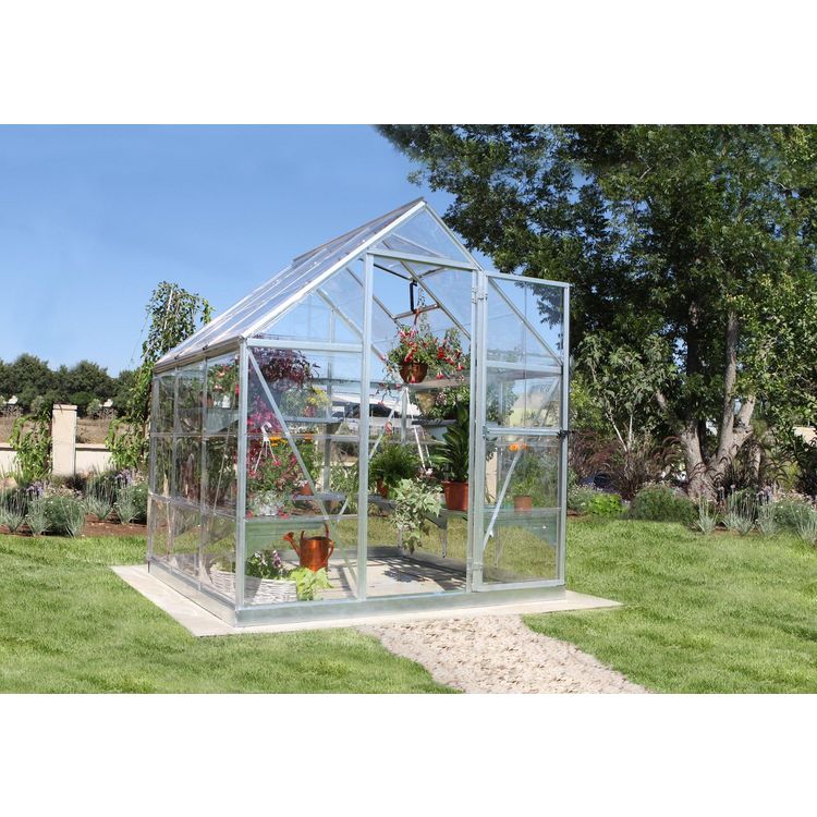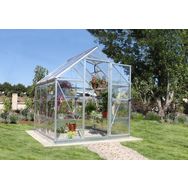 La serre Harmony combine un design pratique, esthétique et durable.  Sa conception fonctionnelle permet un montage simple et une utilisation quotidienne facile. Le cadre en aluminium résistant à la rouille et les panneaux en polycarbonate transparent, traités contre les rayons UV et pratiquement incassables, permettent à cette serre de ne pas nécessiter d’entretien, d’être durable et capable de résister à des conditions climatiques di?ciles pendant de nombreuses années d’utilisation en jardinage.