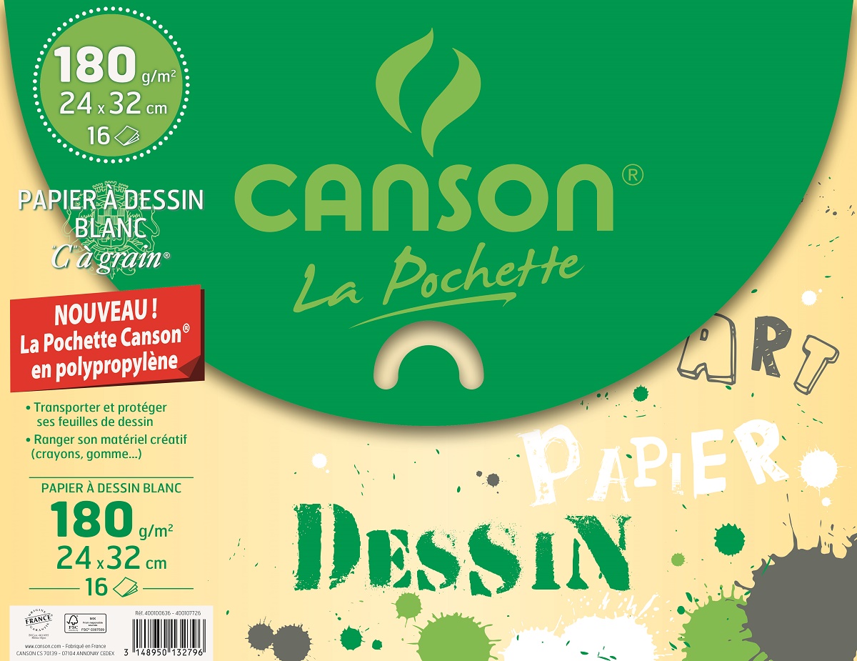 pochette 16 feuilles dessin Canson à grain 180g 24x32cm