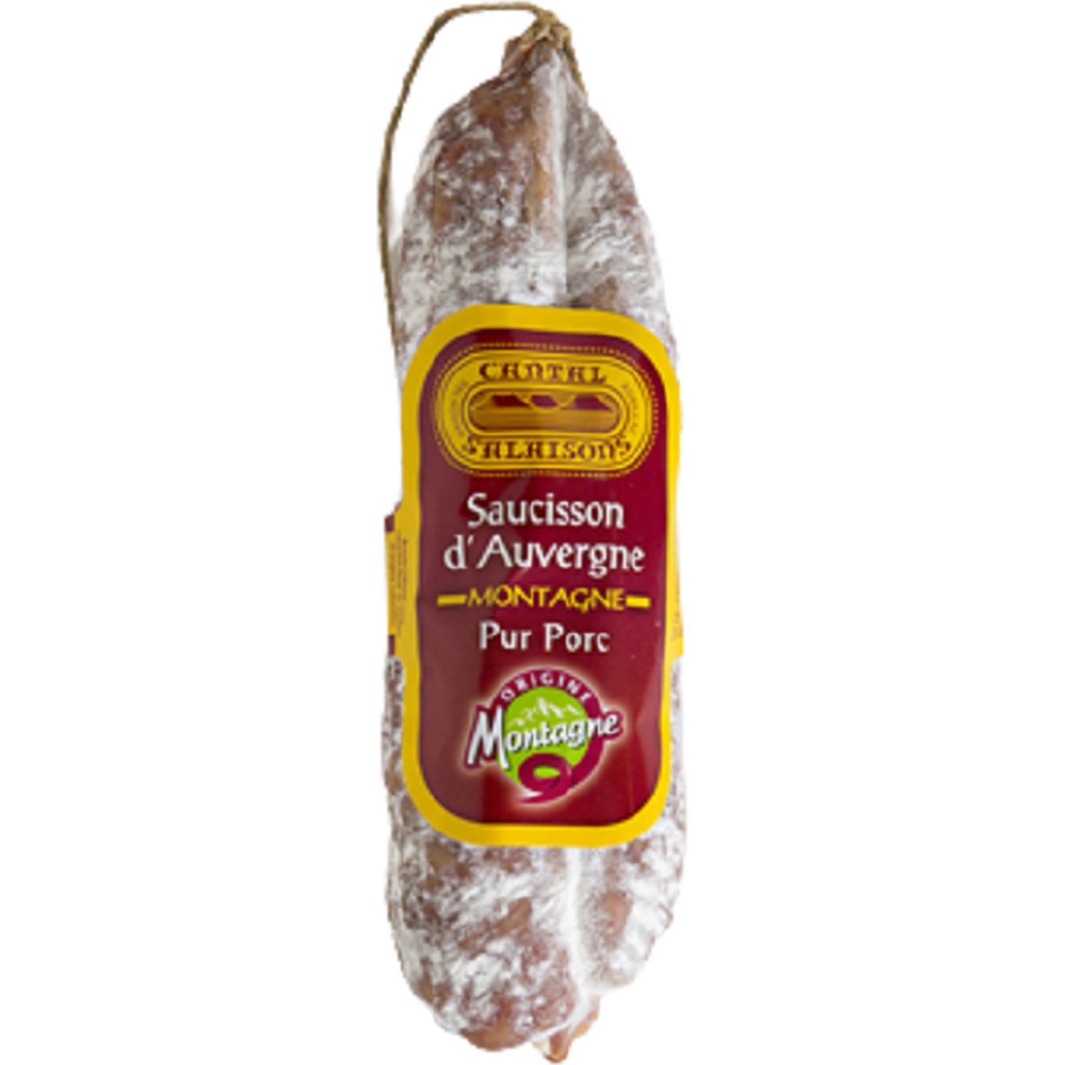 boyau naturel , flore naturelle de surface. sans colorant ni arôme artificiel. produit IGP Auvergne, élaboré à Aurillac (15) à partir de porcs né et élevés dans le massif central. appellation produit de Montagne