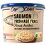 Ingrédients : SAUMON Atlantique 44%, FROMAGE frais 30% (FROMAGE frais, sel), huile de colza, CRÈME fraiche légère, eau, échalote, protéines de LACTOSÉRUM, fécule, plantes aromatiques 0,9% (persil, ail, ciboulette), tomate double concentré, jus de citron en poudre (jus concentré de citron, maltodextrine), sel, épaississant : E415, épice. Traces possibles de SOJA, CRUSTACÉS, OEUF, GLUTEN, CÉLERI, MOUTARDE, MOLLUSQUES.