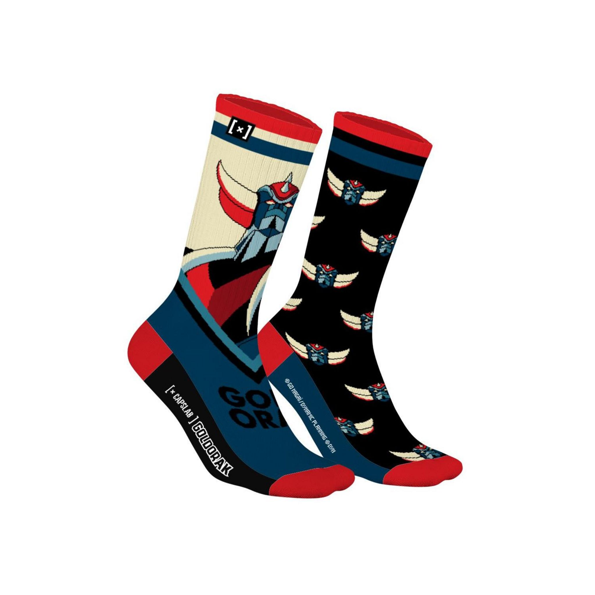 Replonge dans la nostalgie des années 80 avec ces chaussettes Goldorak Capslab dépareillées, aux tons noir, jaune, rouge et beige. Elles combinent chaleur, confort et élasticité grâce à leur composition premium (70% coton, 28% polyamide, 2% élasthanne). La coupe haute assure un bon maintien et un st