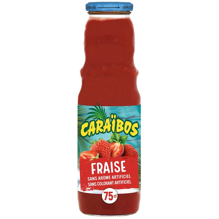Découvrez Caraïbos Fraise, un nectar couleur rouge intense, à la texture pulpeuse. Un produit plein de douceur et de fraîcheur alliées à une belle puissance aromatique. A consommer bien frais. Caraïbos, des jus de qualité. La marque propose des jus et nectars de fruits ayant une teneur en fruits élevée pour une meilleure tolérance aux glaçons (et à l'alcool) ; pour une richesse gustative préservée en cocktail. Ainsi, depuis sa création, Caraïbos a toujours été reconnue et utilisée par les professionnels du bar. La marque s'est imposée très rapidement auprès des barmen et mixologues et est aujourd'hui reconnue comme un acteur incontournable. A noter que Caraïbos travaille l'intégralité de ses produits pour un usage mixé en cocktail mais aussi en consommation pure, non mixée.