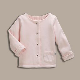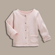Un vêtement bébé essentiel : le cardigan à manches longues doublé In Extenso. 100% coton, confortable et doux pour bébé. Entièrement doublé, poche et revers imprimé pois. Discrète vignette cousue sur la poche. Pratique : ouverture par pressions fantaisie avec coeur. Jeu de surpiqûres à la base.