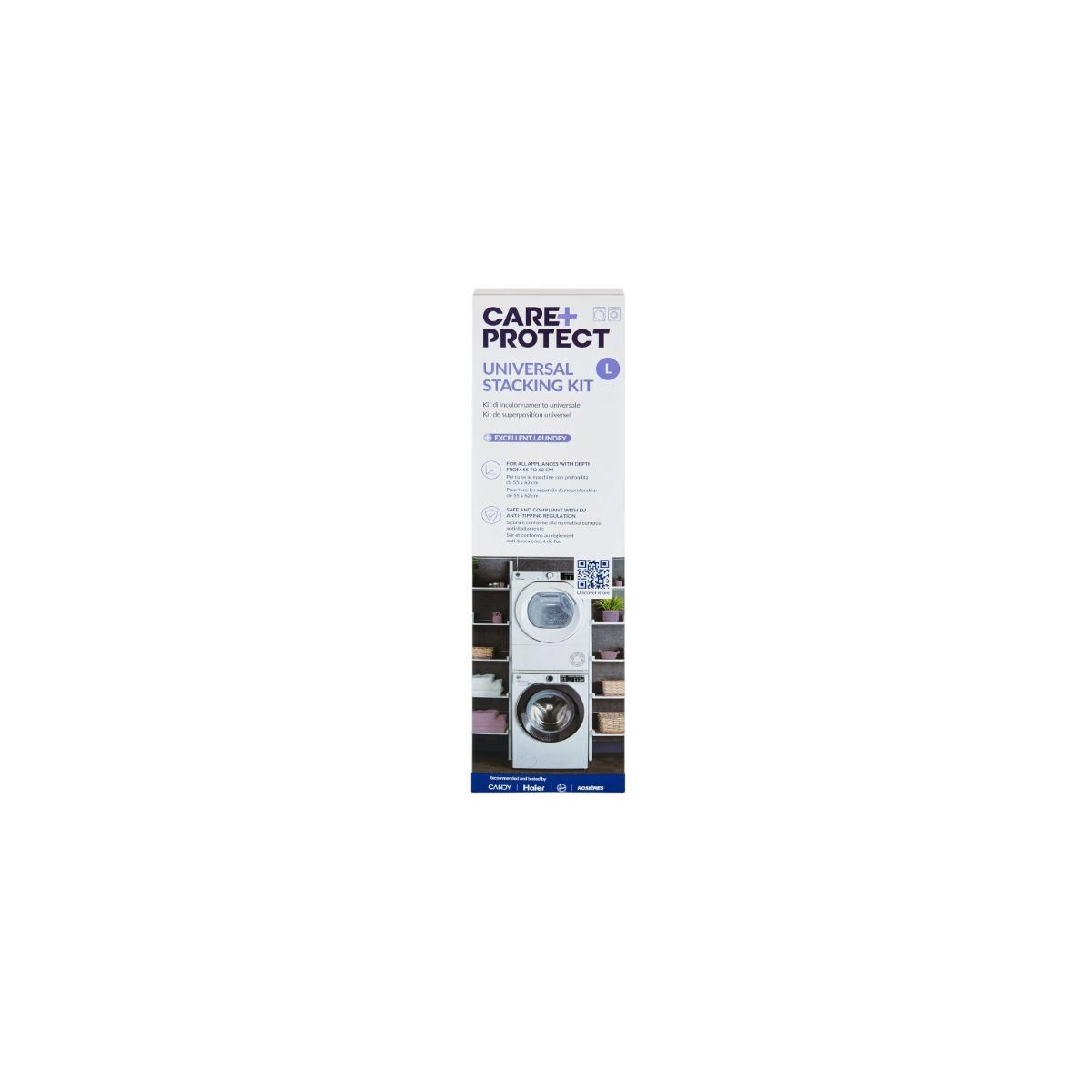 La durée de garantie est de 2 ans. Caractéristiques générales Type de produit Kit de superposition A quoi ça sert ? Le kit de superposition CARE + PROTECT est la solution idéale pour superposer le sèche-linge sur le lave-linge, libérant ainsi de l'espace à la maison et créant un espace bu