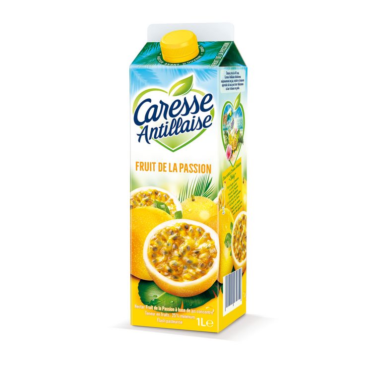 Ingrédients : eau , fruit de la passion à base de concentré 25%, sucre, épaississant : pectine de fruit.