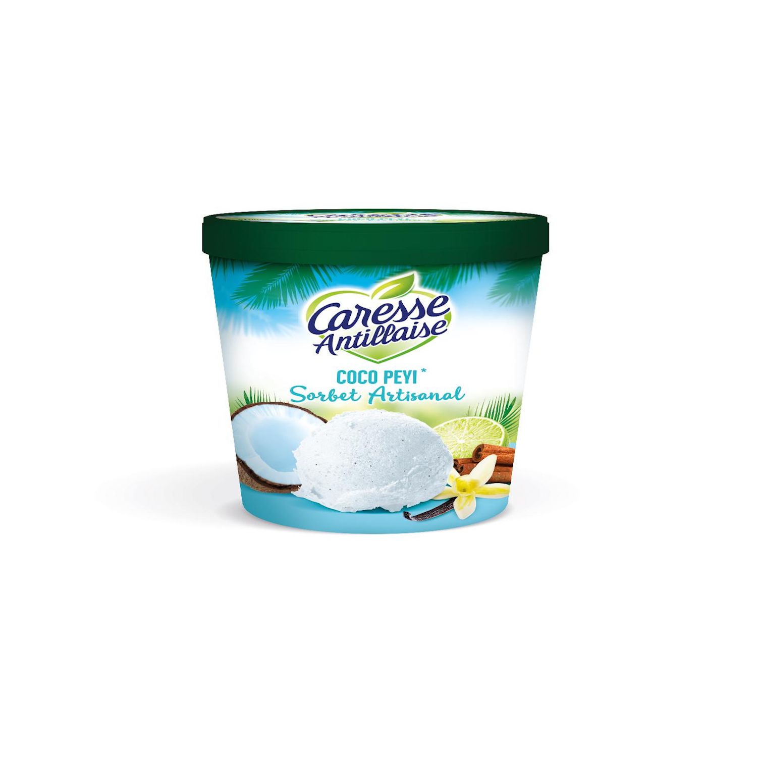 Sorbet à la noix de coco, au citron vert, à la vanille, à la cannelle et à l'arôme naturel d'amande amère 460 mL / 300g