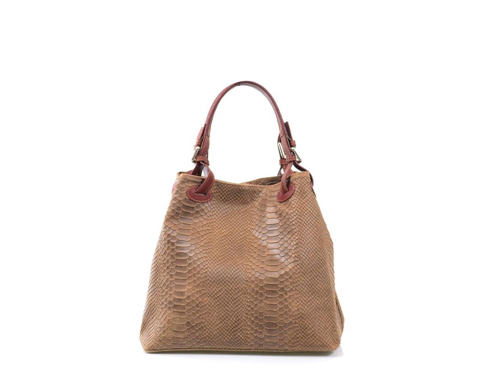 Le sac à main qui est le parfait accessoire pour toutes les occasions, du travail au rendez-vous galant.Sac à main en cuir aspect crocoDeux anses avec boucles décorativesBandoulière réglable et amovibleFermeture avec bouton aimantéDeux compartiments intérieursDeux poches zippées intérieurs