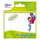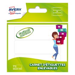 Carnet comprenant 75 étiquettes blanches adhésives de format 45 x 30 mm. Leur adhésif enlevable permet d’étiqueter de façon propre et ferme sur tous types de supports : livres, dossiers, boîtes, documents, bocaux, meubles… L'étiquette peut ensuite être enlever sans laisser de trace de c