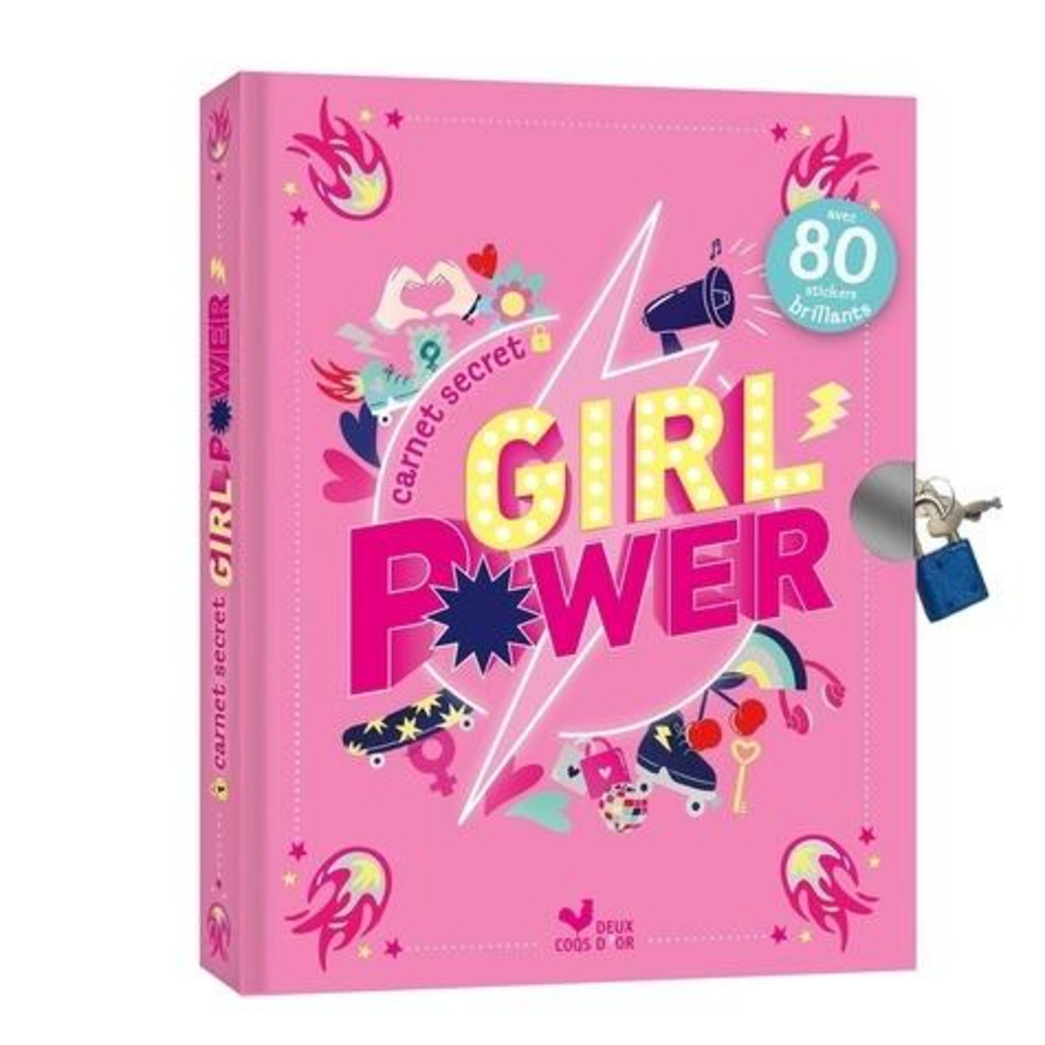 Un carnet secret de 144 pages, avec son cadenas métallique et ses 2 clés. A l'intérieur, on y trouve toutes les rubriques d'un carnet personnel Girl Power : moi en quelques mots (mes ami(e)s, mes super-pouvoirs, ce que j'aime, ce qui m'énerve, mes créations, mes rêves, ma mode préférée, mes séries, mes artistes chouchous, les femmes que je trouve inspirantes...), mais aussi toutes celles d'un journal intime C'est MA vie ! pour se raconter et confier ses secrets.