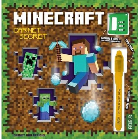 CARNET SECRET MINECRAFT. AVEC 1 CADENAS A CODE ET 1 STYLO A ENCRE INVISIBLE ET LUMIERE MAGIQUE, Fleurus