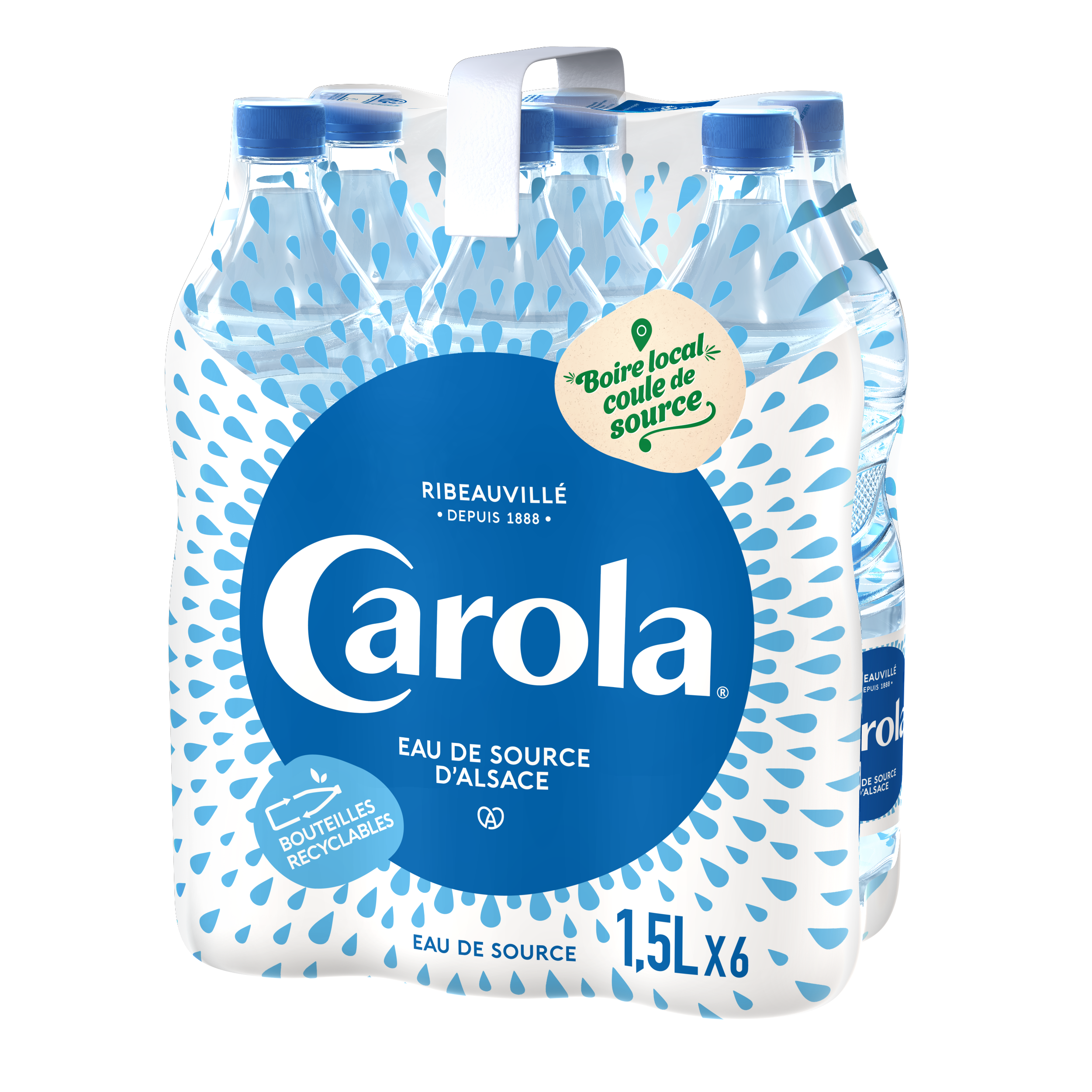 Carola Bleue c'est une eau de source de qualité, idéale pour s'hydrater et se ressourcer tout au long de la journée. Elle convient également parfaitement pour accompagner son repas.