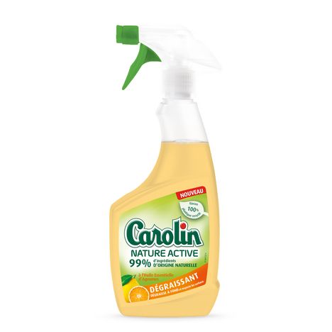 CAROLIN NATURE ACTIVE DEGRAISSANT PIST 500ML Carolin Nature Active Dégraissant élimine efficacement les graisses et les saletés tenaces avec sa formule constituée à 99% d'ingrédients d'origine naturelle et testée dermatologiquement.