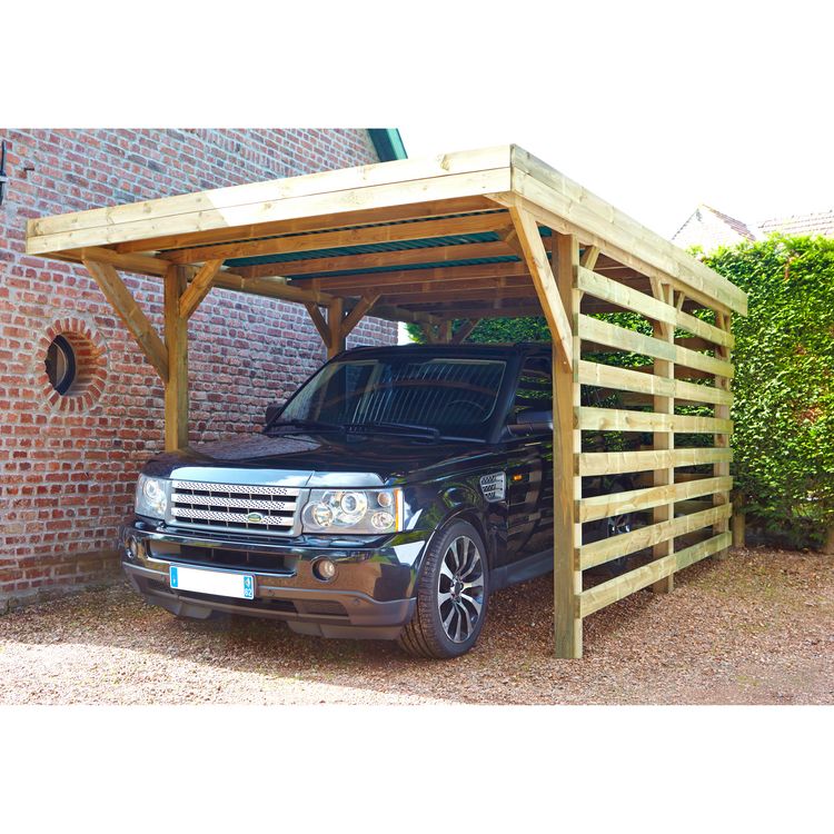 Toiture en polycarbonate Lames fournies pour occulter 2 parois du carport en persienne Montage par emboitement carport traité autoclave et teinté, pas d'entretien Traité et teinté marron