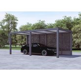 Structure aluminium, peinture époxy grise, lattes inclinables coloris blanc, pieds 10x10 cm, son système de lames amovibles permet d'adapter la lumière en fonction des rayons de soleil et d'offrir une aération optimale. Utile pour protéger sa voiture.
