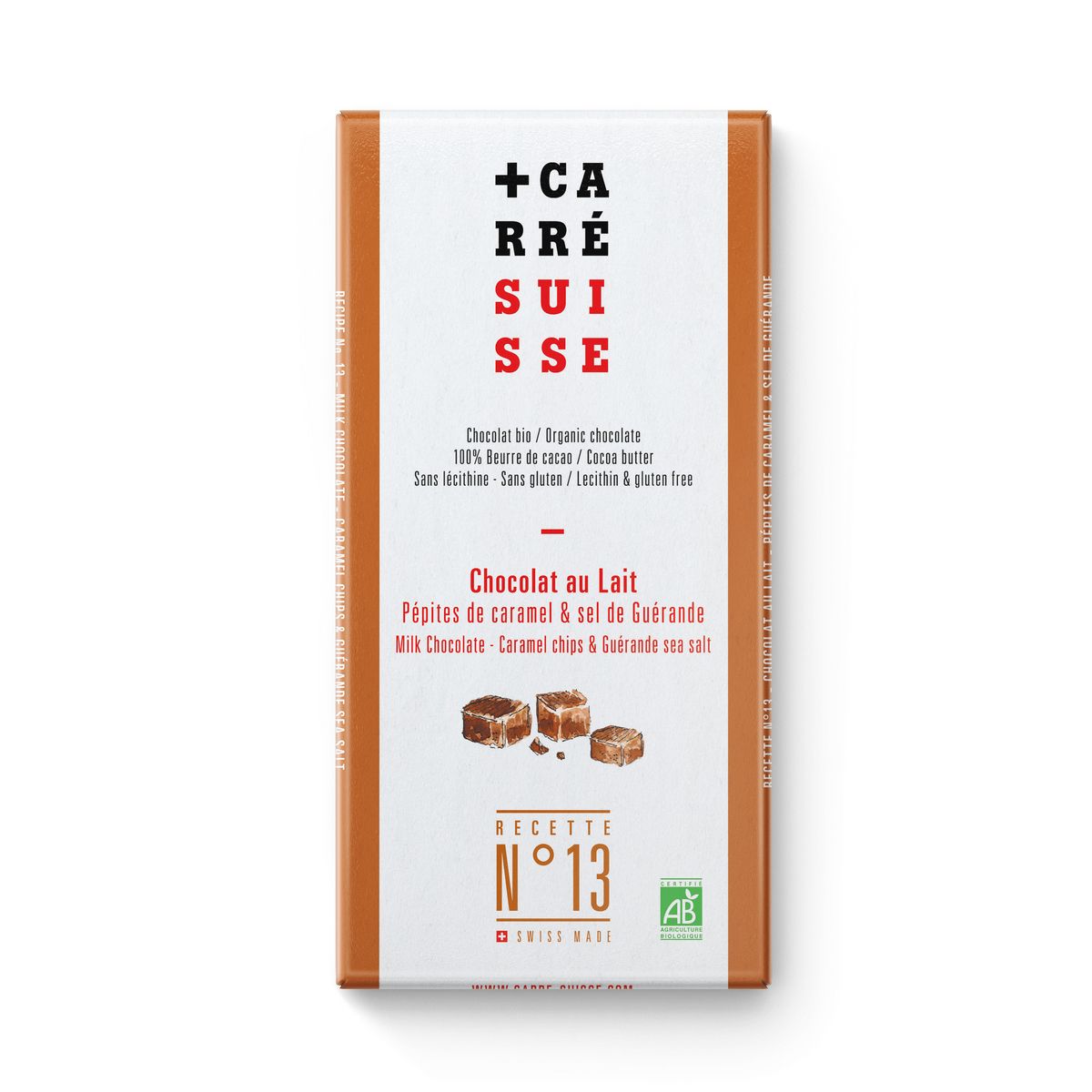 Tablette de chocolat au lait bio pépites de caramel et sel de Guérande N°13
