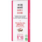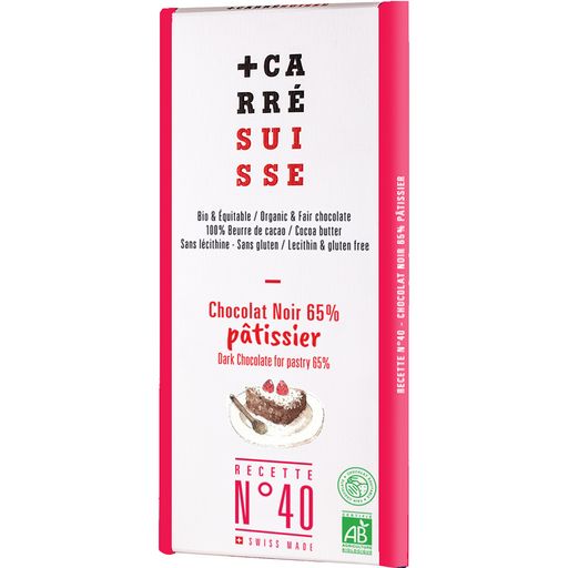 Chocolat Noir 65% Pâtissier 200G BIO Un délicieux chocolat noir pâtissier pur beurre de cacao, 100% naturel, bio et équitable. Petit conseil : pour conserver son aspect lisse et brillant, faites fondre cette tablette au bain-marie à feu doux, sans dépasser les 60°C. À vous de jouer pour le dessert !