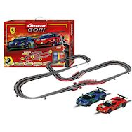Le Carrera GO!!! Ferrari Power Racing est un circuit de course électrique rouge, idéal pour les passionnés de vitesse. Ce circuit de 8,6 mètres et d'une taille de 250 x 145 cm est composé de deux voitures Ferrari fidèles à l'échelle 1:43. Fabriqué en plastique et métal, il offre un montage rapide gr