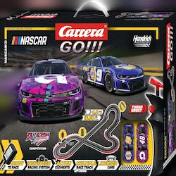 Découvrez le circuit de course électrique Carrera GO!!! NASCAR Talladega Competition. Ce circuit de 4,9 mètres offre une expérience de course palpitante à domicile avec deux voitures de course inspirées des véritables véhicules NASCAR. Facile à assembler, il est conçu pour les enfants à partir de 6