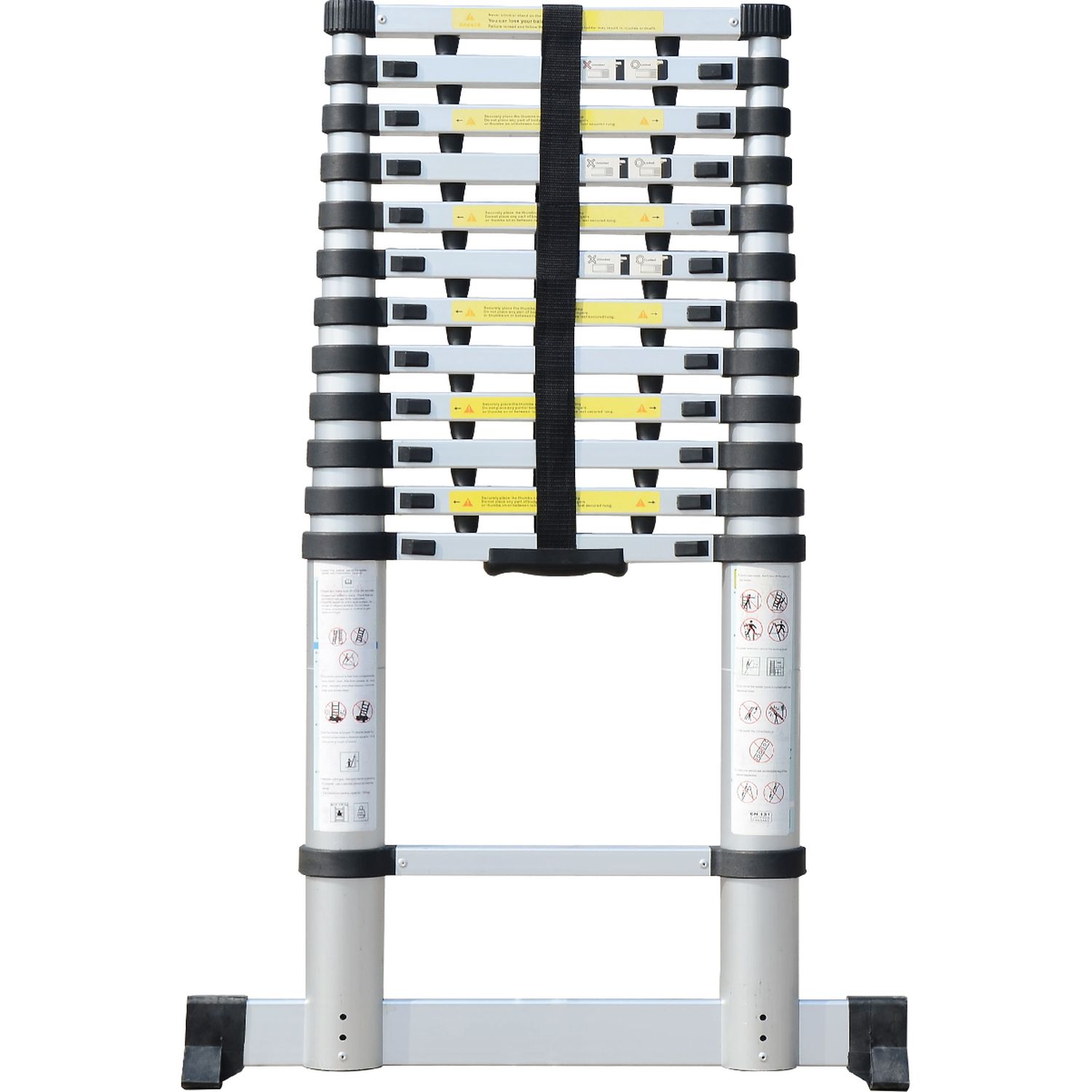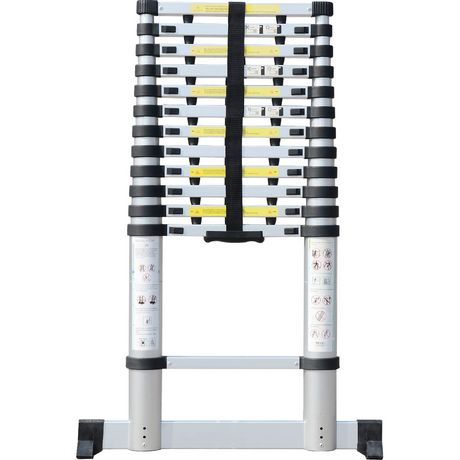 Fonctionnelle, cette échelle télescopique 3,8 M de marque CARRERA vous aidera dans le cadre de travaux ou d'entretien dans ou autour de la maison. L'échelle fournit une bonne stabilité avec assez de largeur et des patins antidérapants. En mode "déplié", elle vous permet de travailler jusqu'à 4,80 m