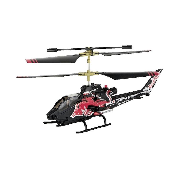 Le hélicoptère télécommandé Carrera RC Red Bull Cobra TAH-1F est idéal pour les amateurs de modélisme. Il utilise la technologie radio 2,4 GHz permettant de piloter plusieurs hélicoptères simultanément. Il dispose de fonctions de décollage et atterrissage automatiques ainsi qu'un assistant de hauteu