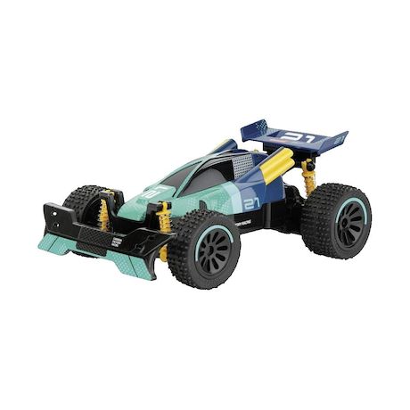 Découvrez le Buggy Carrera Factory Racing #21, une voiture radiocommandée au design sportif et attrayant. Son châssis robuste, équipé d'un mécanisme différentiel et d'une suspension avant et arrière, assure une excellente stabilité et maniabilité tout-terrain. Doté de pneus pneumatiques, ce buggy peut atteindre une vitesse maximale de 12 km/h pour des sensations de conduite réalistes. Il offre un temps de conduite de 20 minutes après une charge complète de 50 minutes grâce à son accumulateur LiFePO4 longue durée. La technologie radio 2,4 GHz permet de faire fonctionner simultanément jusqu'à 16 voitures sans interférence. La télécommande incluse assure un contrôle précis et facile. Prêt à l'emploi, le buggy est livré avec un câble de chargement USB. Idéal pour les enfants à partir de 6 ans qui aiment le loisir en plein air et les courses entre amis.