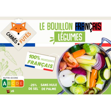 Le bouillon légumes français Carrés Futés est fabriqué en France à partir d'ingrédients 100% français. C'est le premier bouillon 100% français sur le marché. Et ce n'est pas tout ! Ce bouillon de légumes Carrés Futés est aussi sans huile de palme, r