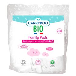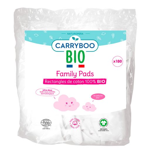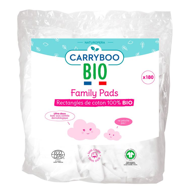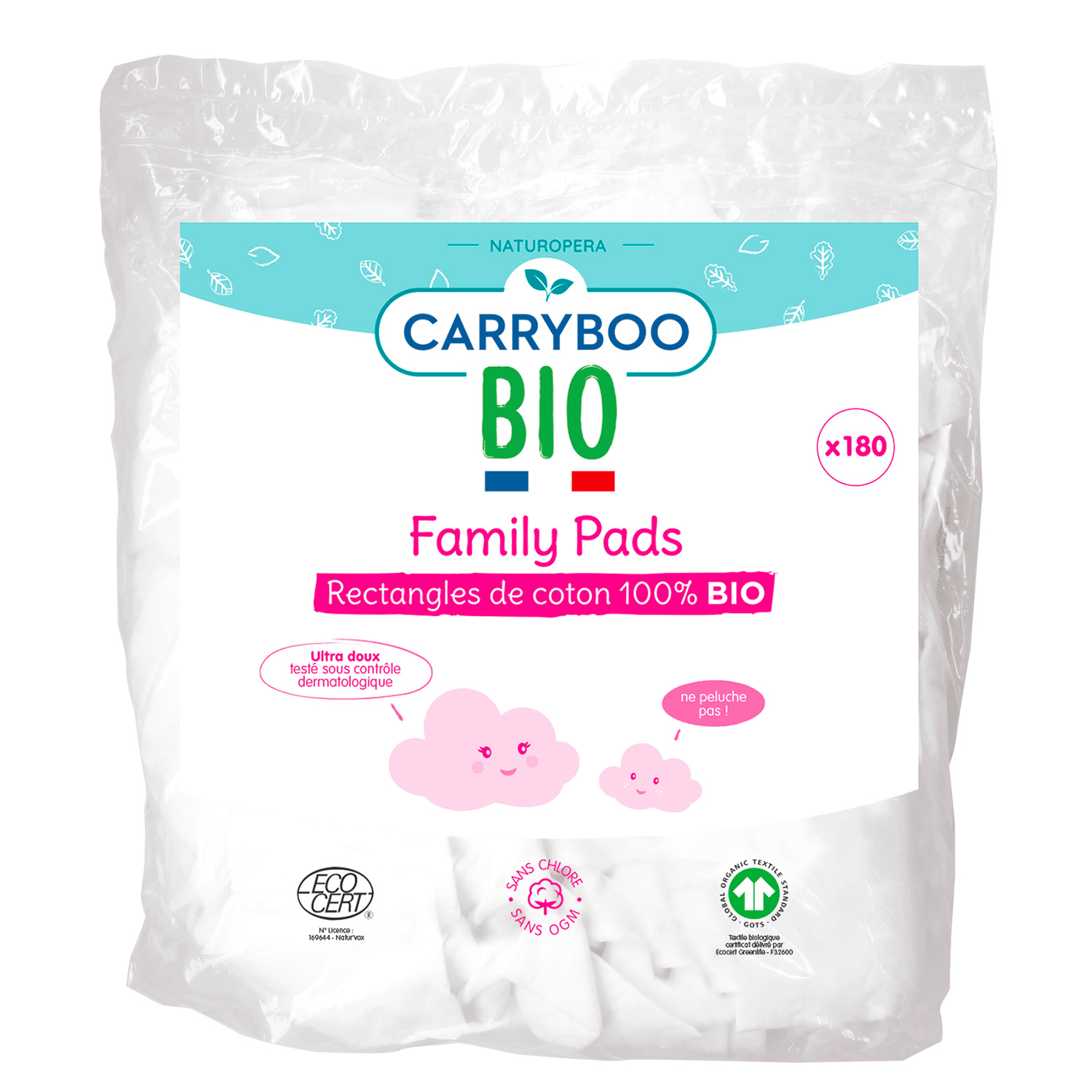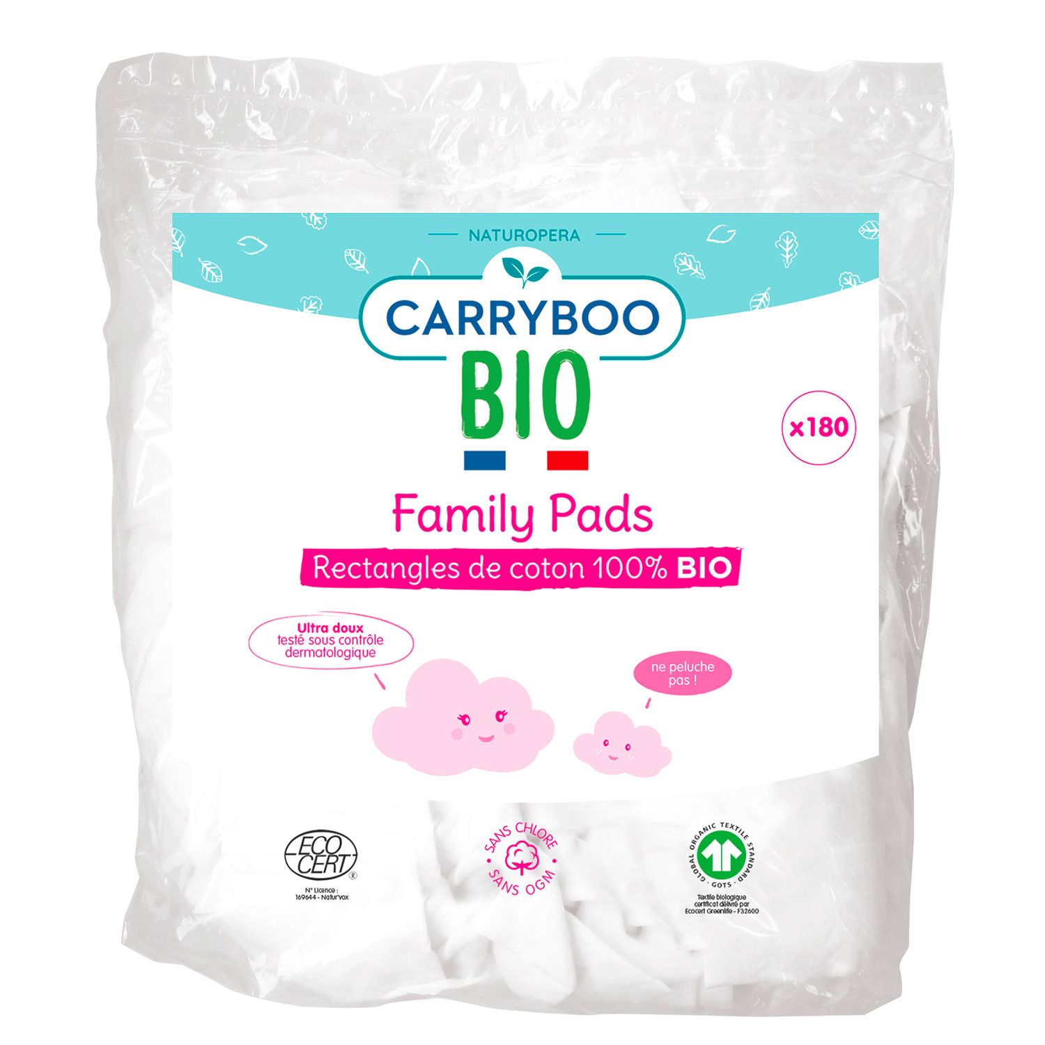 CARRYBOO - Family Pads de Coton 100% Bio Coton 100% Bio non-OGM Coton cultivé sans pesticides Format familial multi-usages pour toute la famille