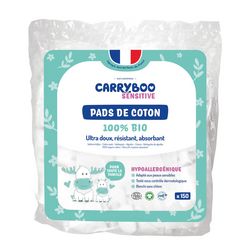 CARRYBOO SENSITIVE - Composés à 100% de coton Bio blanchi sans chlore, les pads de coton Carryboo sont idéal pour une toilette en douceur de bébé et sont même pratiques pour toute la famille !