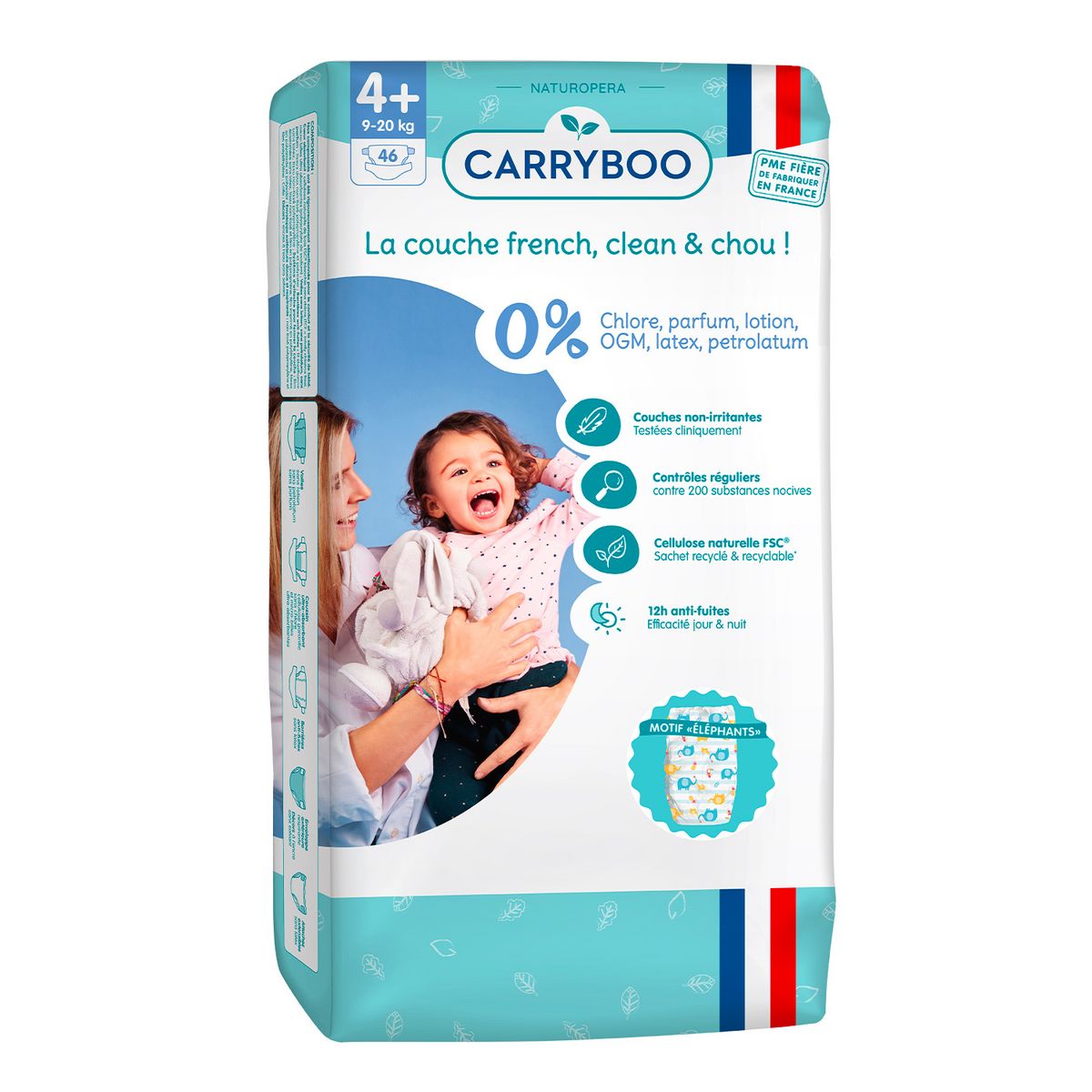 Écologiques, les couches Carryboo ont obtenu la certification FSC et Swan/Nordic Ecolabel et sont fabriquées en France.
