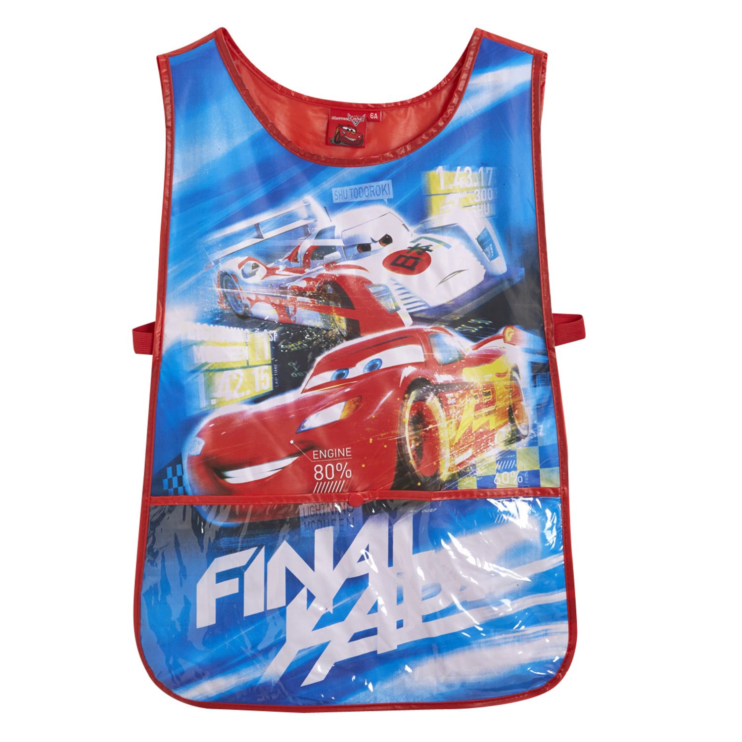Cars s'invite aux activités de votre enfant avec ce tablier en plastique sans manches. Tablier disney pour garçon. Il est pratique à enfiler. Elastiqué de chaque côté de la taille. Grand imprimé et 1 grande poche pressionnée sur le devant. Facile à entretenir.