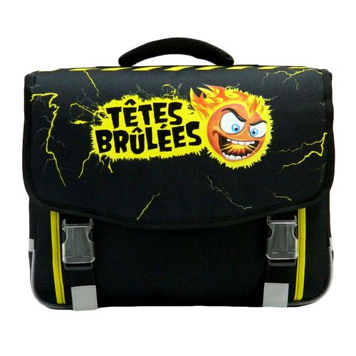 Cartable 41cm 2 compartiments garçon Têtes brûlées noir et jaune